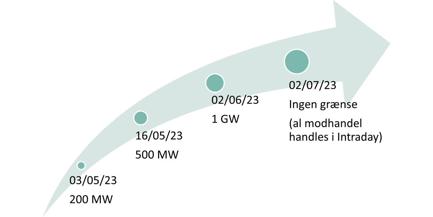 Fra og med 2. maj 2023 blev en del af den strukturelle modhandel flyttet fra regulerkraftmarkedet (som specialregulering) til intraday markedet, og efter planen vil al modhandel være flyttet til intraday markedet pr. 2. juli 2023.