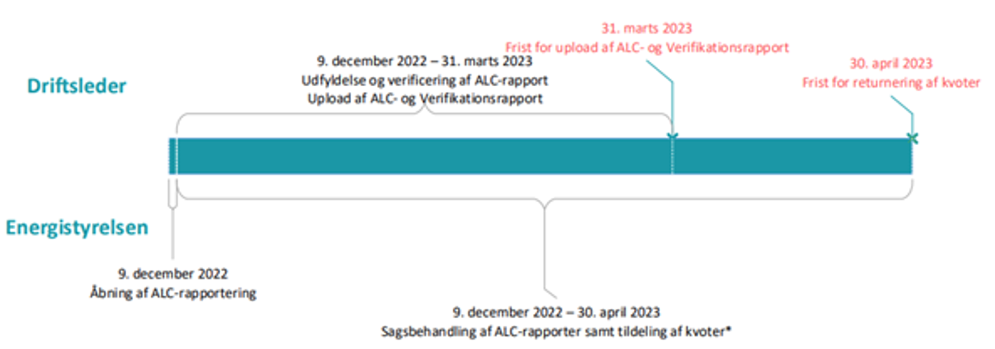 Se mere om ALC-rapporteringen på ens.dk her Indberetning af ALC-rapport til kvotetildeling | Energistyrelsen (ens.dk)