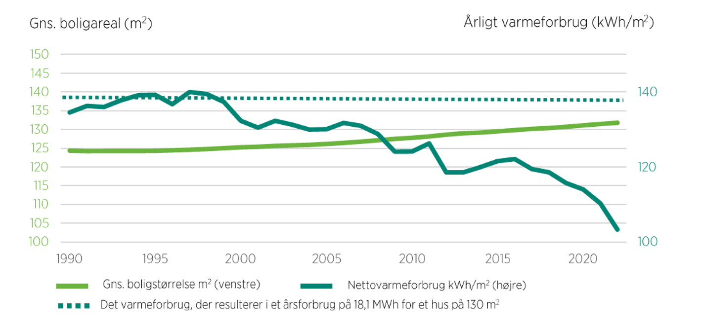 Varmeforbrug pr. m2 er halveret for lejligheder