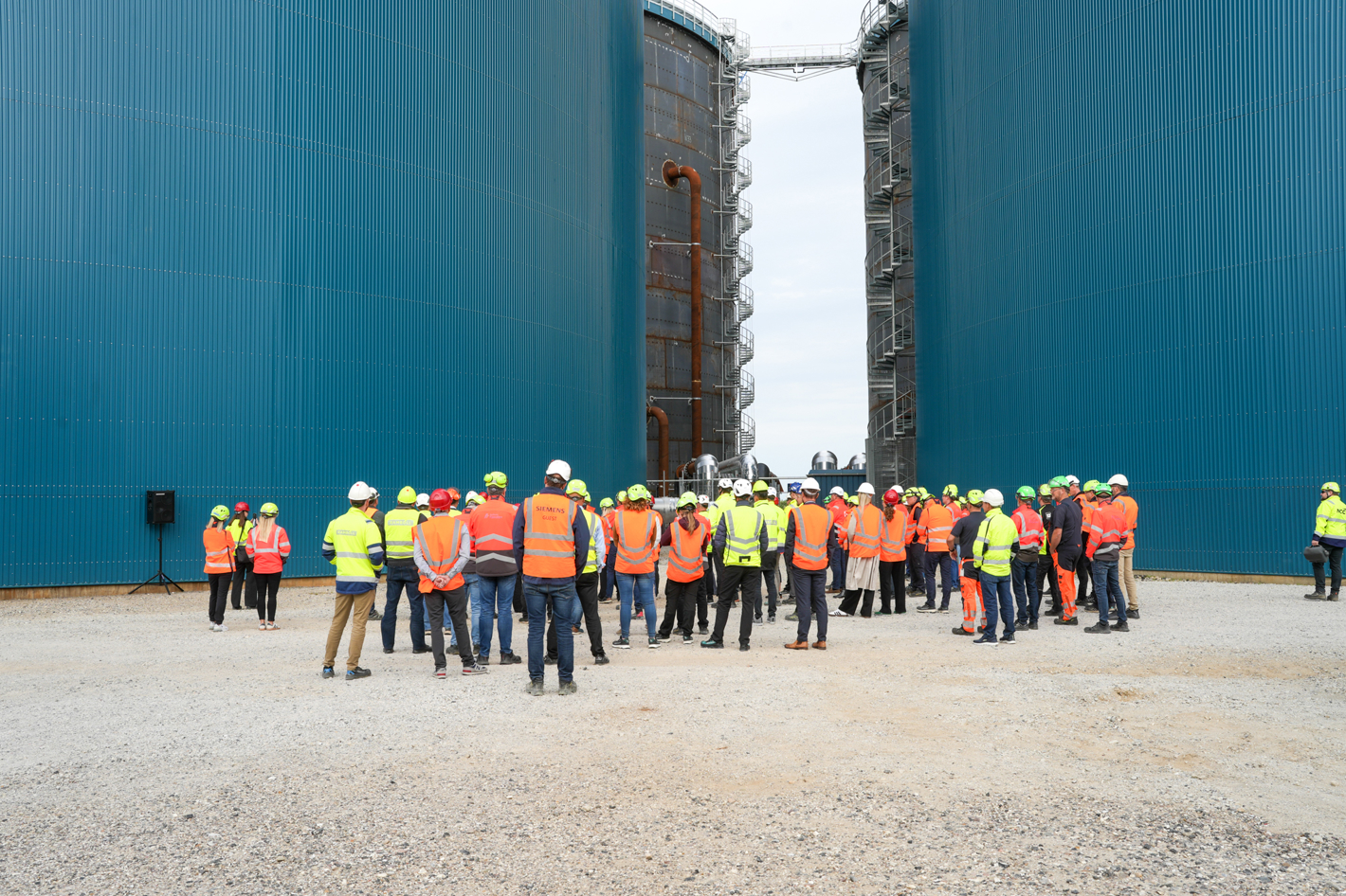 Aalborg Forsyning viser de fire akkumuleringstanke frem til de fremmødte. Foto: Aalborg Forsyning.