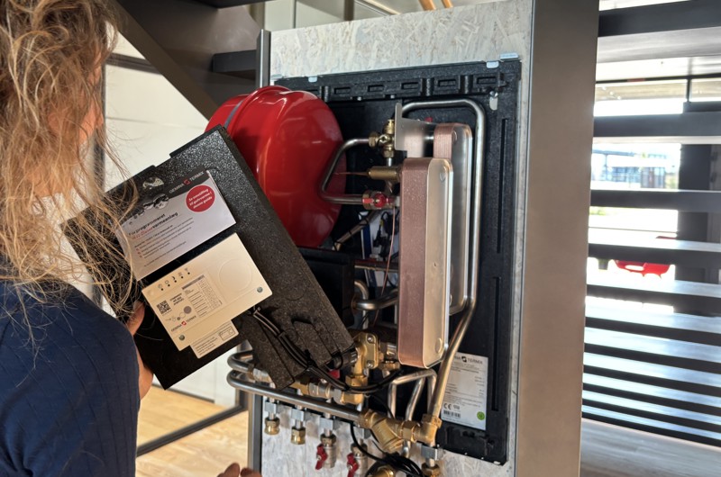 Enheden er fra Termix og har to varmevekslere – en til at sende varme ud til varmeinstallationer og en til at opvarme brugsvand.