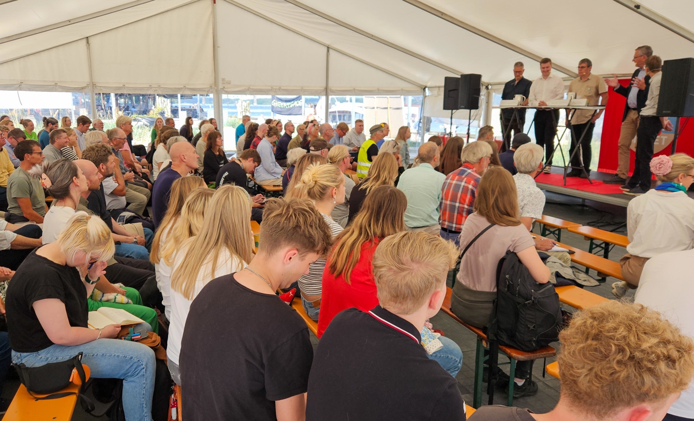 Til at begynde med lagde Magnus Skovrind Pedersen ud med at tage temperaturen på publikum i det røde telt. Han bad publikum række hånden i vejret, hvis de tror, at det lykkes regeringen med at udfase brugen af gas i danske boliger inden 2035. Det samme spørgsmål fik ordførerne.