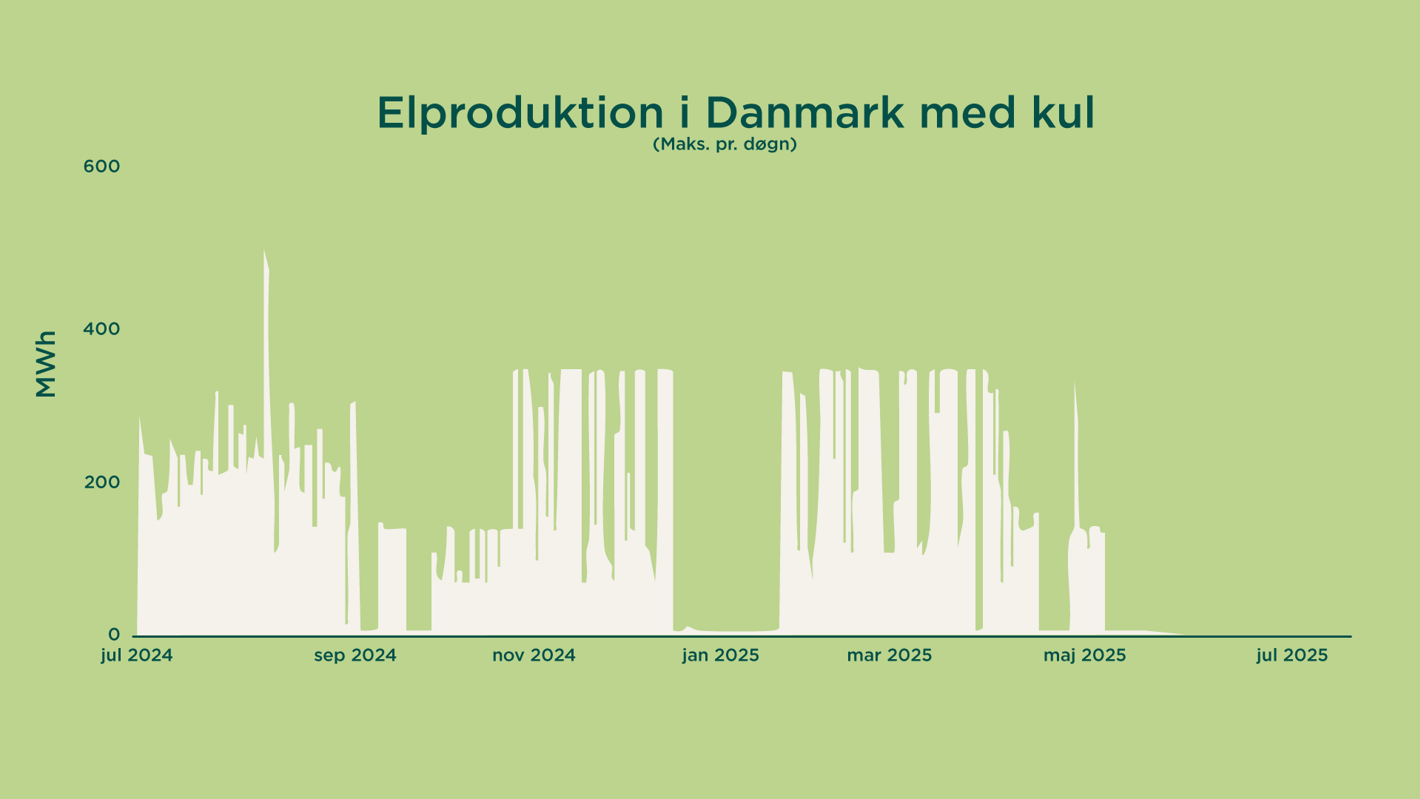 Den seneste dag med kulbaseret elproduktion var den 1. maj 2025, viser tal fra de europæiske transmissionssystemsoperatører ENTSOE.