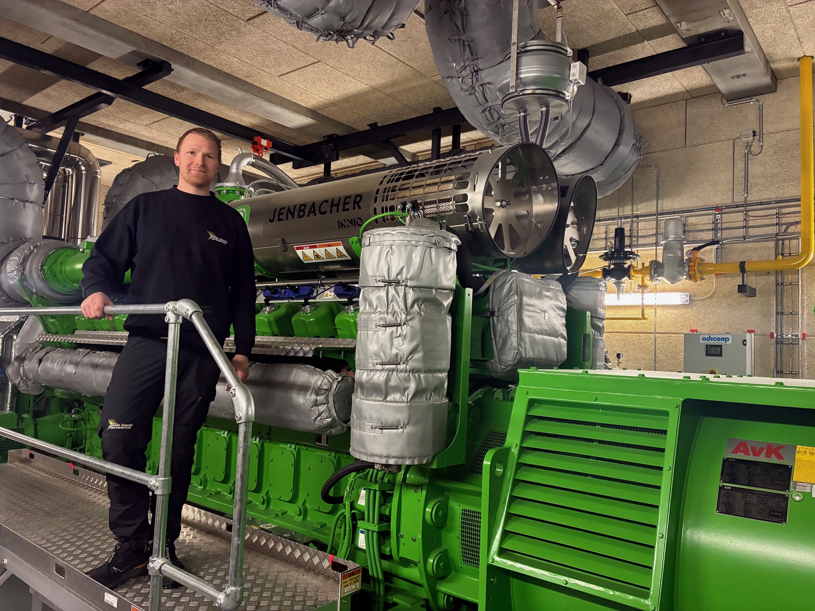 Nyeste Investering som Hvide Sande Fjernvarme har gjort sig en ny gasmotor. Foto: Morten Rauhe.